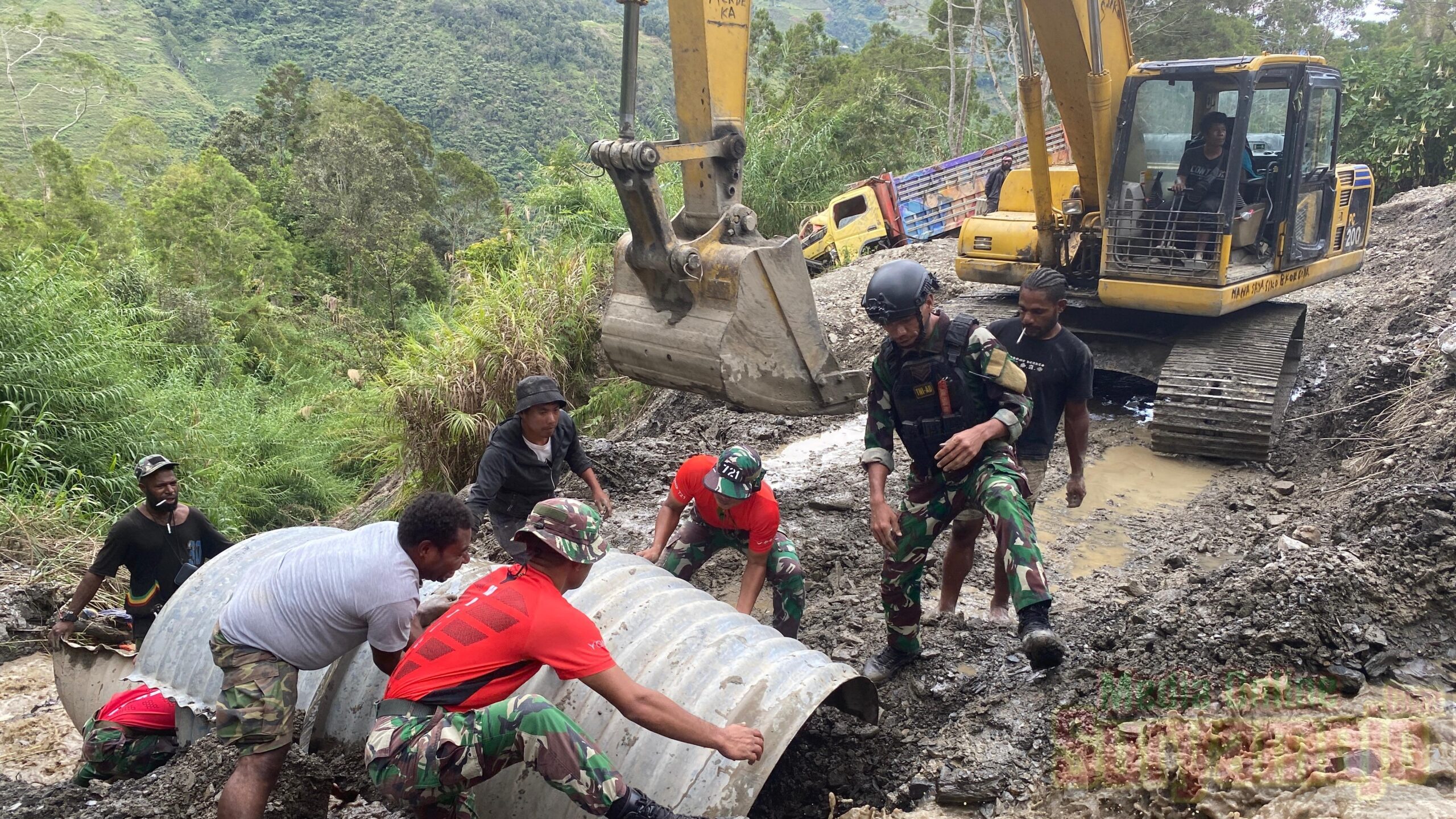 Tolikara, (Suryamojo.com) – Pelaksanaan karya bakti yang digelar oleh Satgas Pamrahwan Yonif 721/Makkasau, kini menyasar jalan lintas antara Kabupaten Tolikara dengan Puncak Jaya, tepatnya di Desa Laor, Distrik Kanggime, Kabupaten Tolikara, Papua Pegunungan.